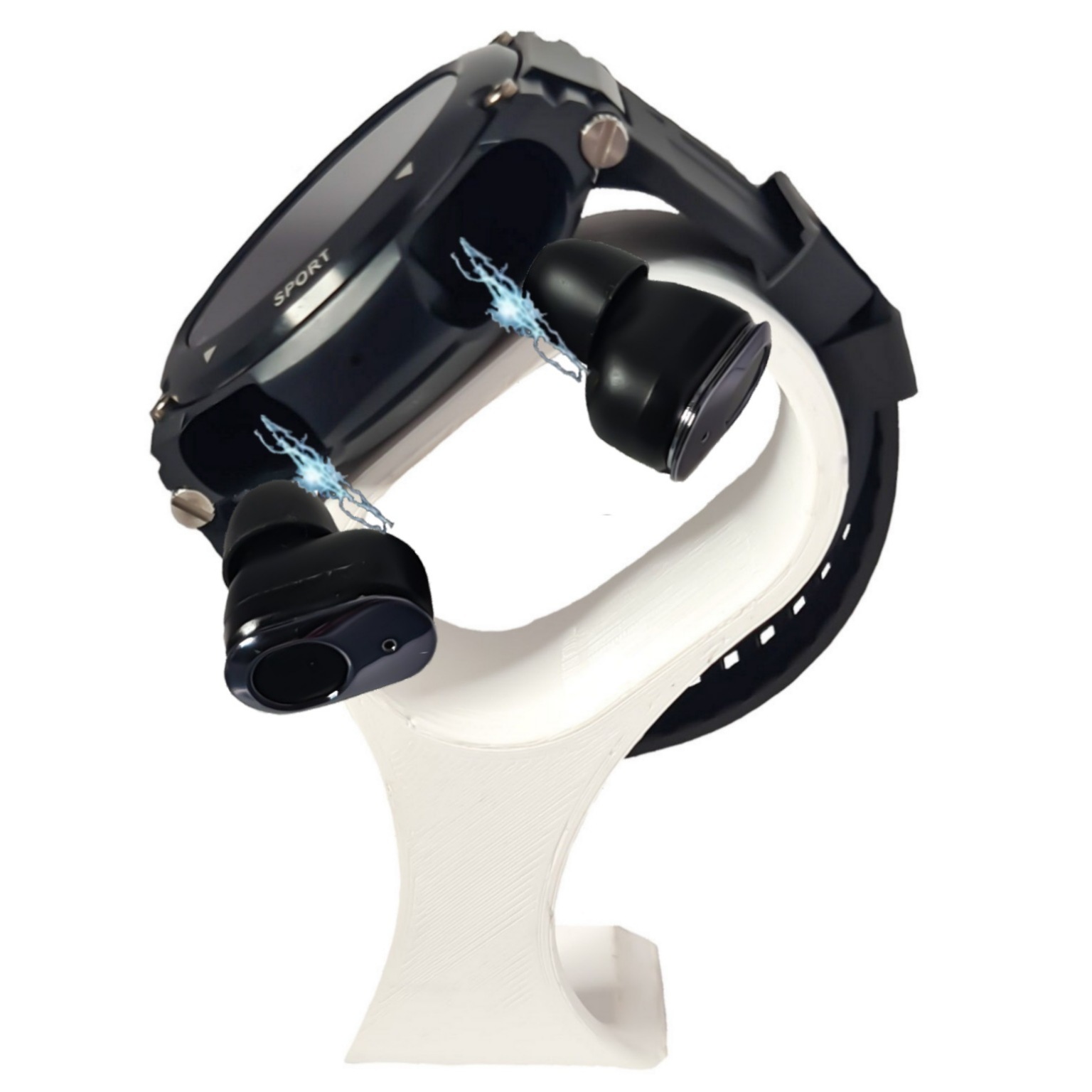 Der glasklare Klang und die kraftvollen Bässe der Headphones überzeugen auf ganzer Linie und sind ein absoluter Hörgenuss. Die Headphones liefern Dir bis zu 2,5 Std. Musikvergnügen mit der stabilsten Bluetooth 5.0 Technologie. Die Smartwatch bietet Dir bis zu sechs weitere Akkuladungen und funktioniert hierbei wie ein Ladecase.